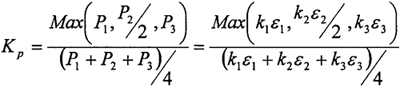 試驗中選用的電阻應變片長度為0.2mm,電阻為119.8±0.2Ω,相差很小,即k1、k2/2、k3彼此差別很小,所以上式簡化為: