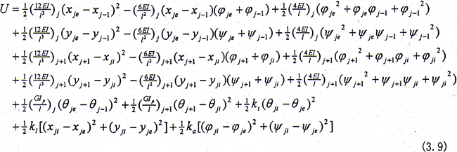 式中 {q}={x1 y1 φ1 ψ1 … xje yje φje ψje xji yji φji ψji … xn yn φn ψn}T