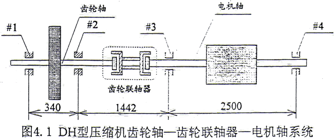 圖4.1是某國產(chǎn)DH型透平壓縮機組的核心部分,系統(tǒng)由齒輪軸、電機軸、齒輪聯(lián)軸器和滑動軸承組成。