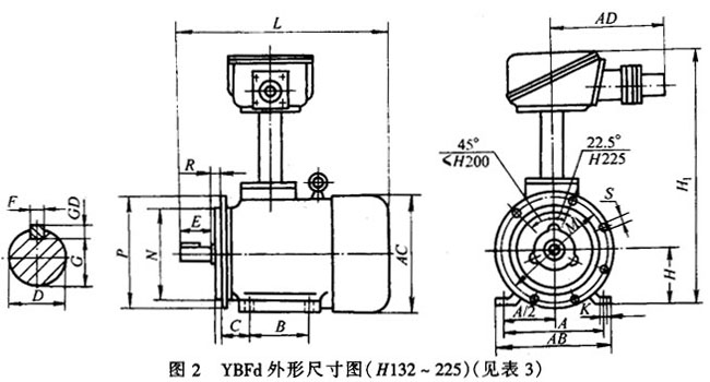 YBF系列風機用電動機無風扇、風罩,依靠軸流風機運轉(zhuǎn)時引入氣流,對電機進行冷卻,電動機的軸伸端帶螺紋;景惭b方式為B30,電動機安裝在風機風筒上,電機出線盒安裝在非軸伸端。