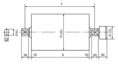 采用TZ型支座時(shí)電動(dòng)滾筒的安裝尺寸見下表。TZ型支座通用范圍:D=315─800mm