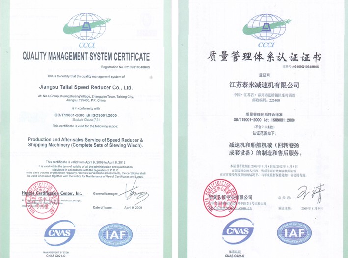 質(zhì)量體系認(rèn)證證書(shū)