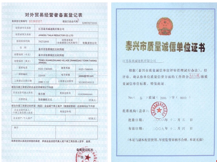 泰興市質(zhì)量誠(chéng)信單位證書(shū)