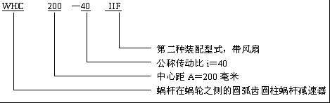 ![]() ![]() WH系列圓弧齒圓柱蝸輪減速機型號說明及標(biāo)記示例