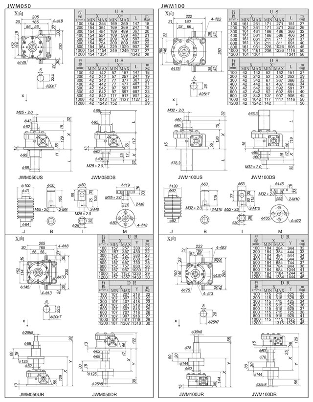 ![]() 三、JWM、JWB系列外形尺寸圖表