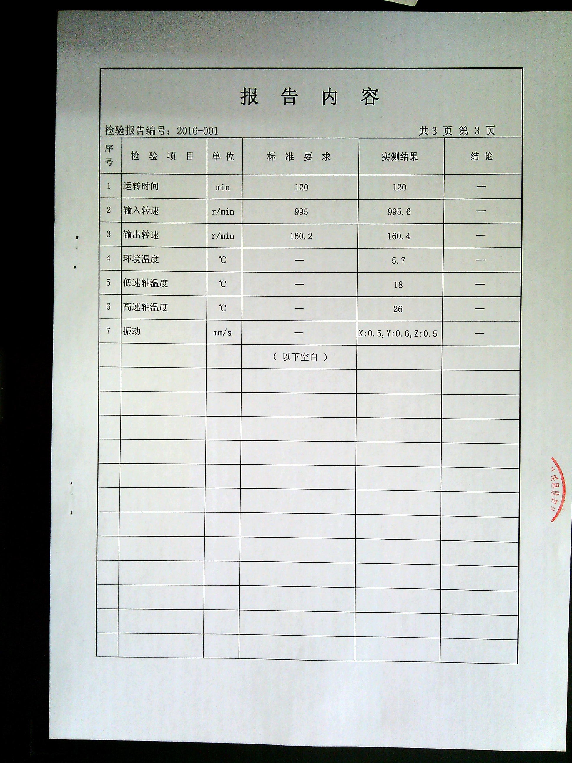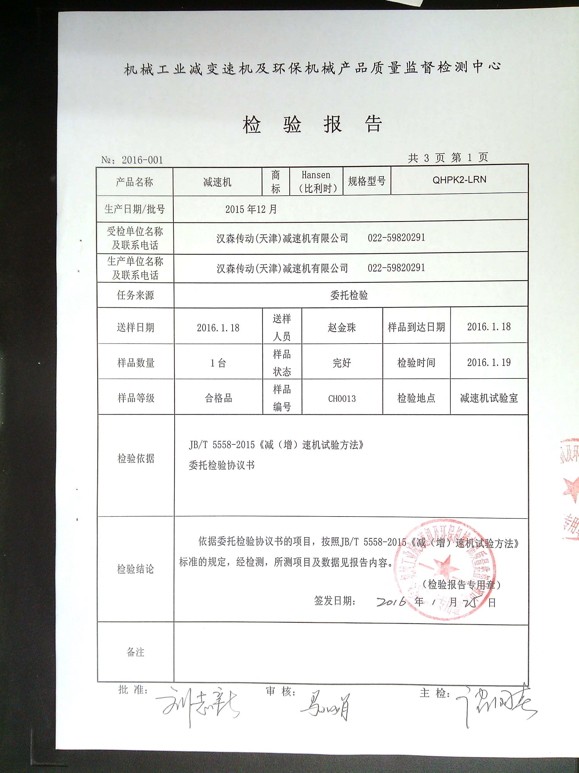 減速機(jī)檢驗(yàn)報(bào)告檢測報(bào)告